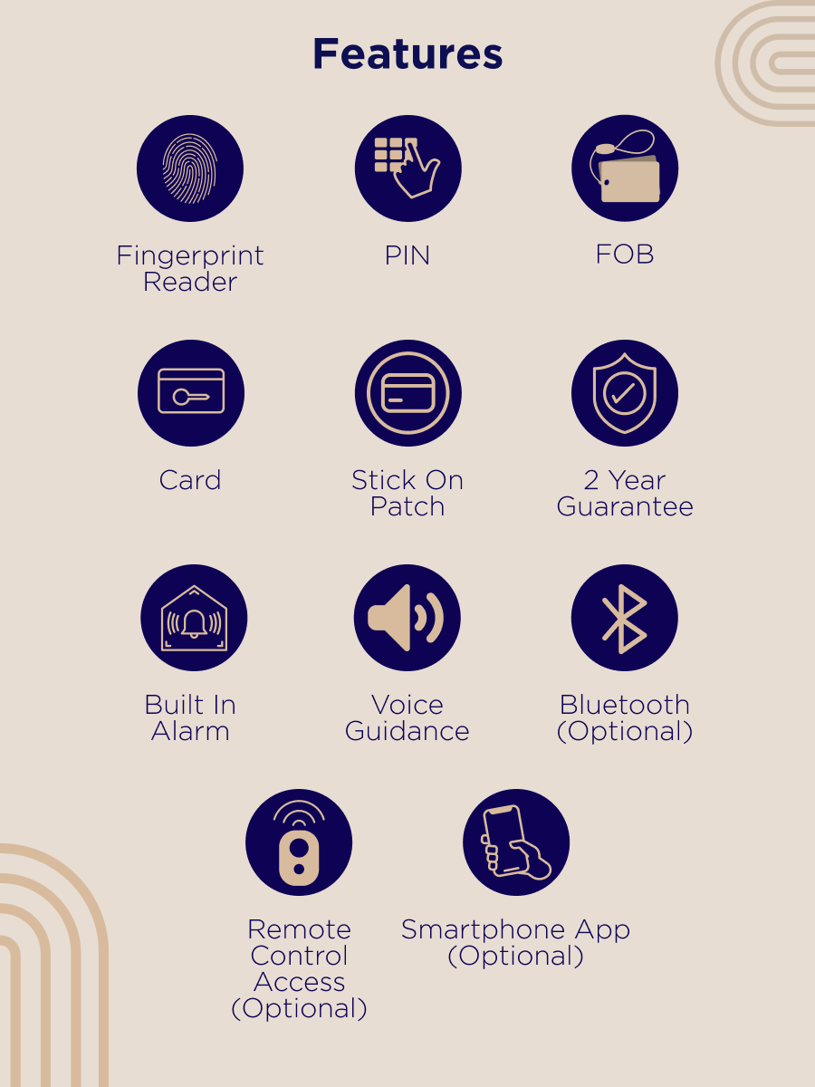 - Double locking – de-activate touch pad/Cards when you are at home.